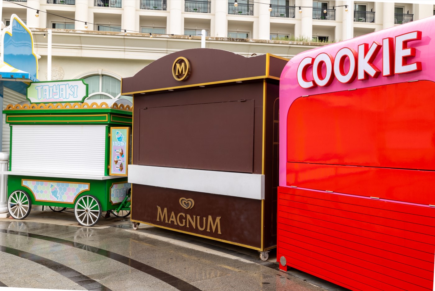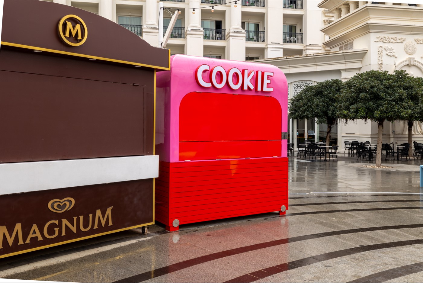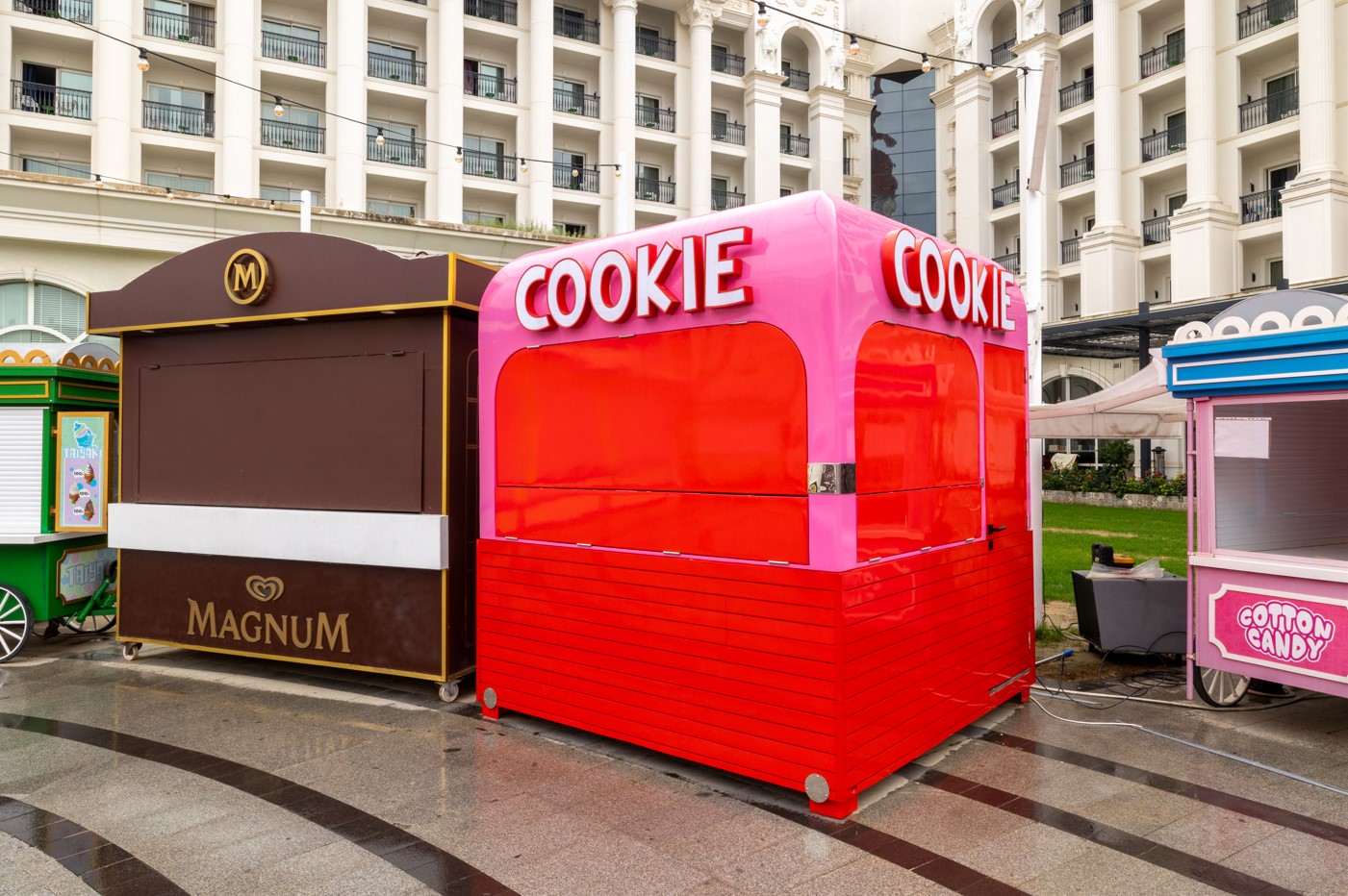 Tatlı lezzetlerin en keyifli hali için tasarlanan Cookie Kiosk, soğuk içecek ve kurabiye servisinde estetik ile işlevselliği bir araya getiriyor. Canlı renkleri ve modern görünümüyle bulunduğu her alanda fark yaratırken, kapandığında da hem güvenli hem de şık bir duruş sergiler. Mobil kahve servisini kurabiye ile birleştirmek isteyen işletmeler için mükemmel bir çözüm sunar.