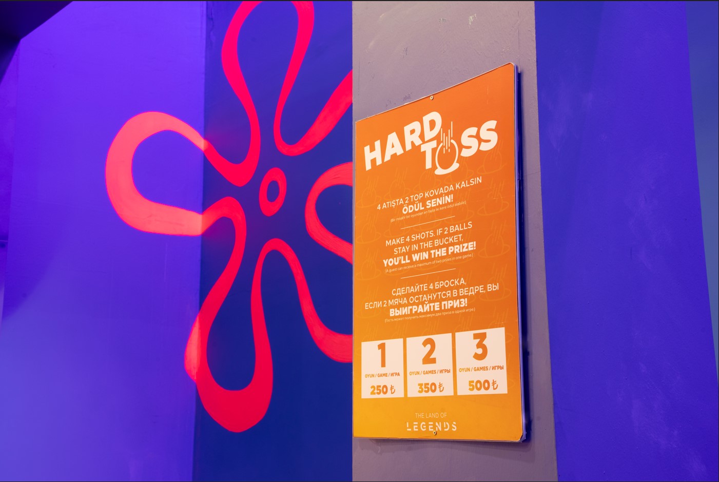 60x60x140 cm ölçülerinde olan Hard Toss, MDF üzeri elyaf kaplama boyalı malzeme ile üretilmiştir. Bu sayede hem estetik görünüm hem de dayanıklılık açısından beklentileri karşılar. Hafif ve kompakt yapısı, taşıma ve kurulum kolaylığı sağlar. Özellikle hızlı kurulum gereken etkinliklerde tercih edilen oyunlardan biridir.