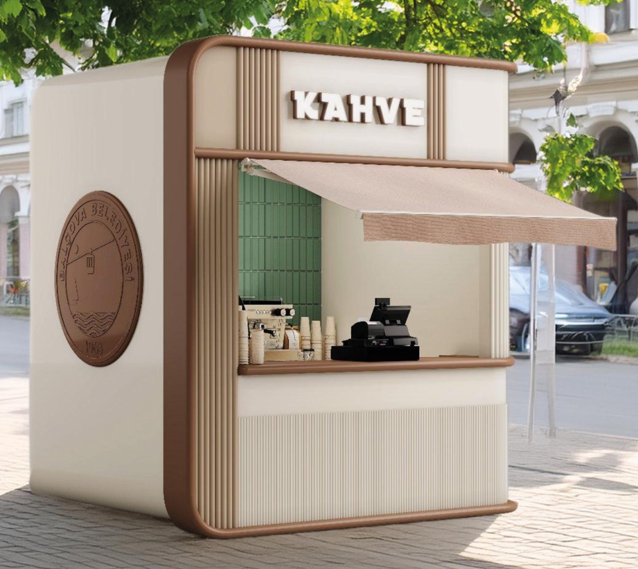 Taşınabilir, dayanıklı ve estetik tasarımıyla yoğun yaya trafiğine uygun pratik ve dikkat çekici bir kahve ve simit satış çözümüdür.
