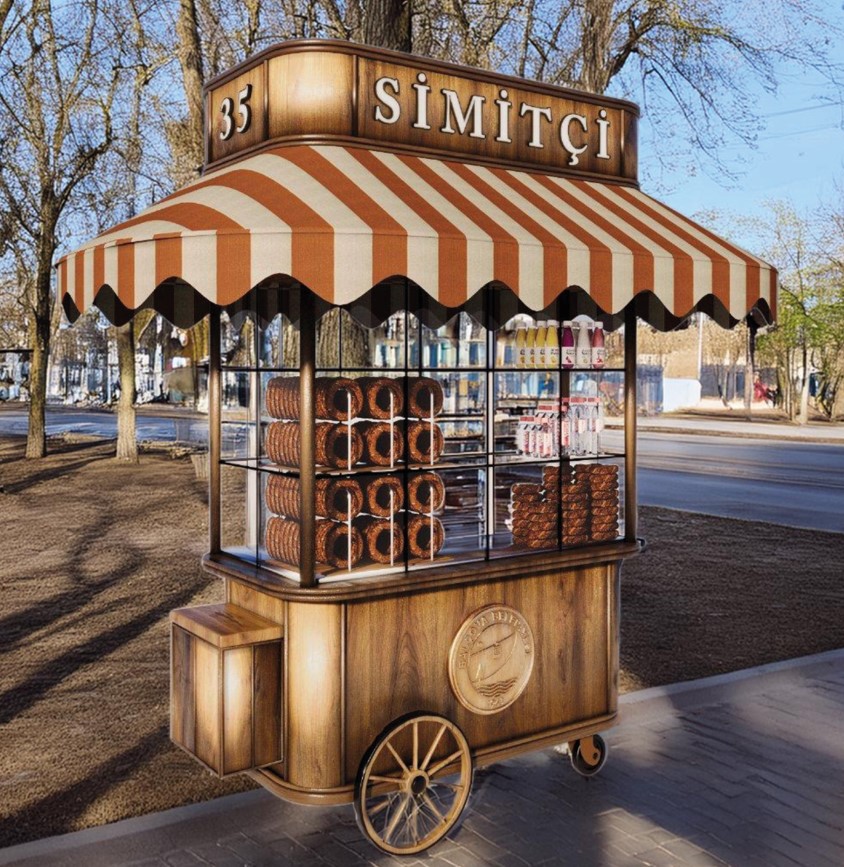UV korumalı sabit tente ile güneş ışınlarına karşı koruma sağlayan bu model, farklı hava koşullarında bile güvenli kullanım imkânı tanır. Hareket kabiliyeti yüksek tekerlek sistemi sayesinde kolayca taşınabilir ve çeşitli satış noktalarında pratik şekilde konumlandırılabilir. Simit Arabası, hem geleneksel satıcılar hem de modern girişimciler için fonksiyonel, hijyenik ve şık bir çözüm sunar.